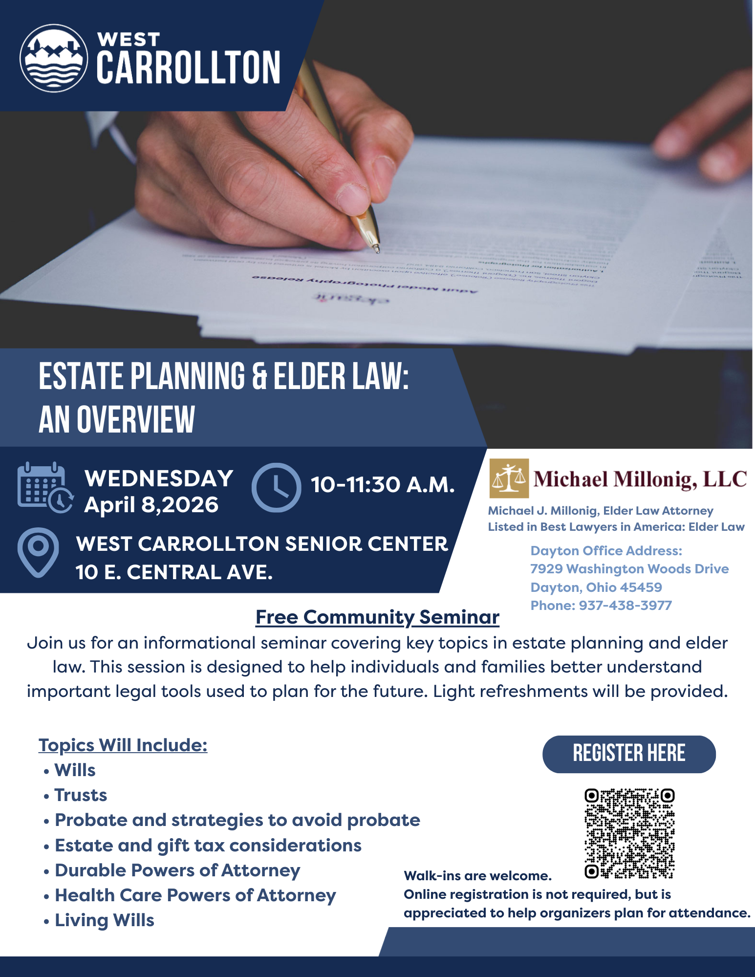 Time and Date: Wednesday, April 8, 2026 from 10:00 – 11:30 a.m. at the West Carrollton Senior Center, 10 E. Central Ave. Registration Information